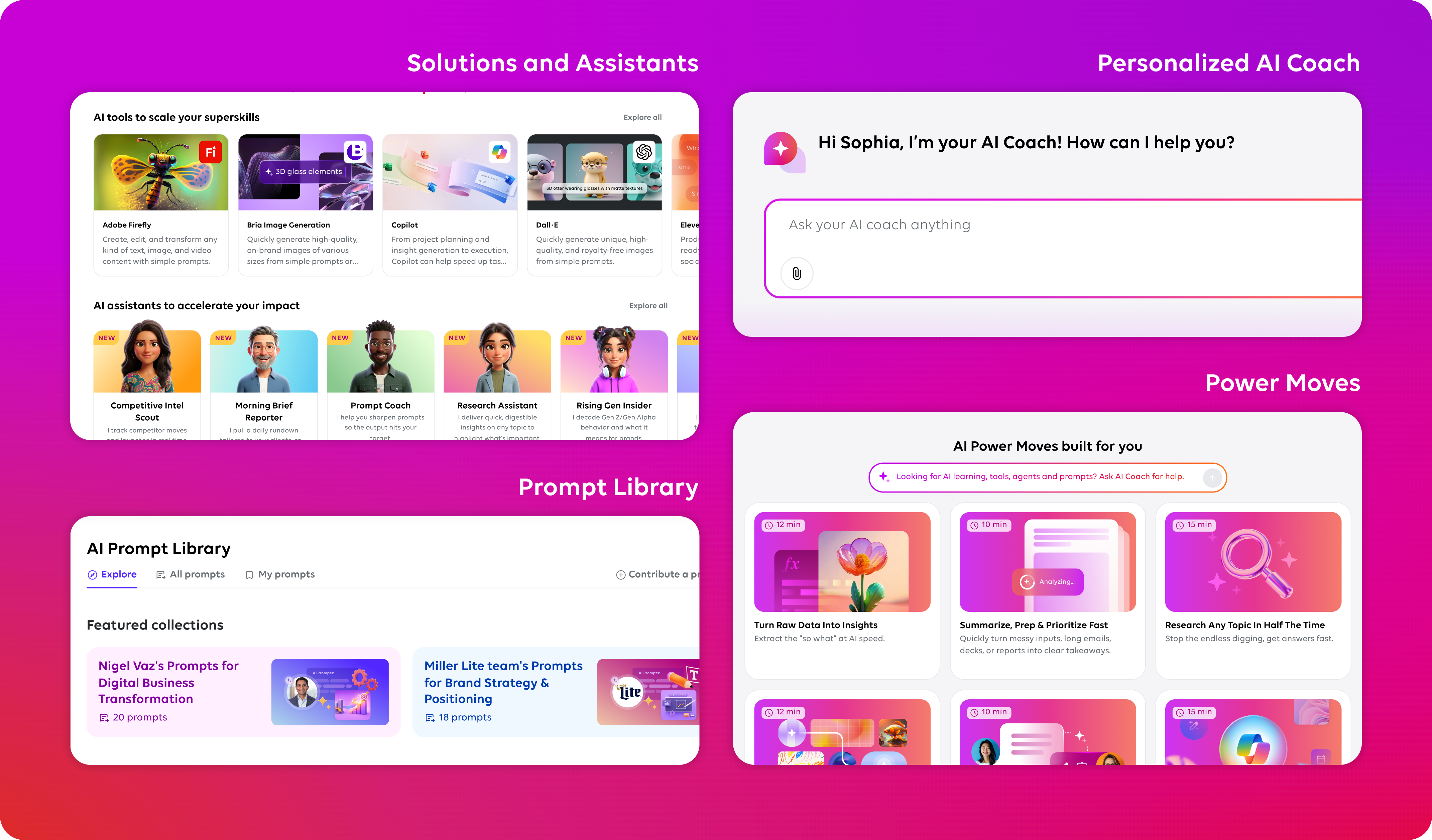 And our tools, prompt libraries, and custom AI assistants apply AI to real work, right away.